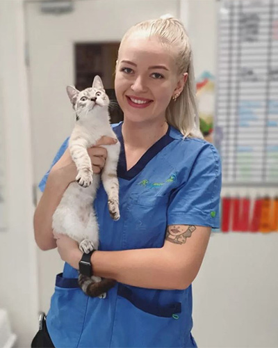 Caitlin grew up in the UK in the small town of Swindon. She came to Australia for a 12-month adventure and has been here in Cairns since. That was 13 years ago! Caitlin’s love of the outdoors and all things FNQ is why she’s stayed so long. She’s known since the age of 16 that she would be a part of the veterinary world, and she’s worked so hard to get here. Caitlin is fascinated with surgical vet nursing and client & patient care. She has a particular love for all the wildlife we get to meet and care for here at the clinic. She agrees completely with the saying, “Choose a job you love and you’ll never have to work a day in your life”. Caitlin transitioned to the position of Lead Vet Nurse in 2026, and looks forward to helping guide and mentor our already brilliant team.